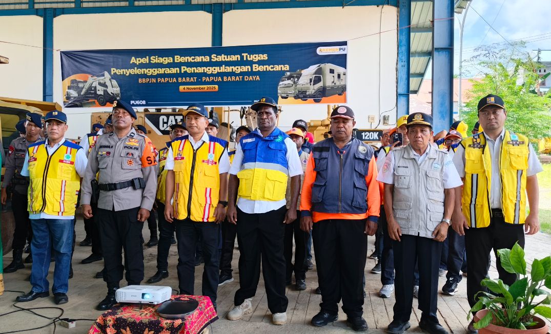 “Apel ini juga menjadi sarana menjalin koordinasi dan sinergi yang kuat dengan berbagai instansi terkait lainnya untuk penanganan bencana yang lebih cepat dan terpadu,” ungkap Kepala BBPJN Papua Barat-Papua Barat Daya, Wijayanto ST.,M.T usai apel siaga bencana, Selasa (4/11/2025). Apel siaga itu digelar secara nasional melalui Video Converence yang dipimpin langsung Menteri PU, Dody Hanggodo.