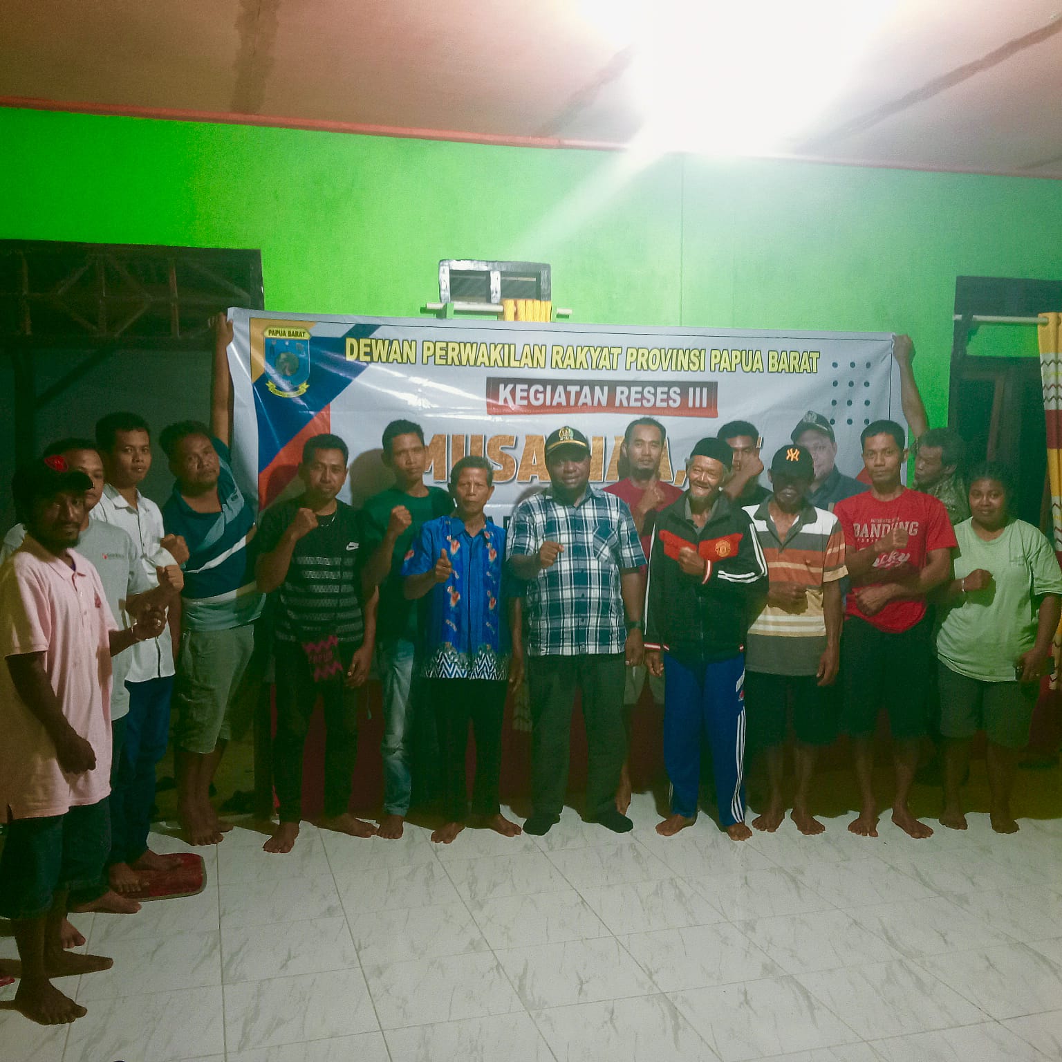 Anggota DPRPB Musa Naa foto bersama masyarakat Distrik Weriagar usai reses di Sekretariat HIPMOS, Senin (10/11/2025). (FOTO//IST)
