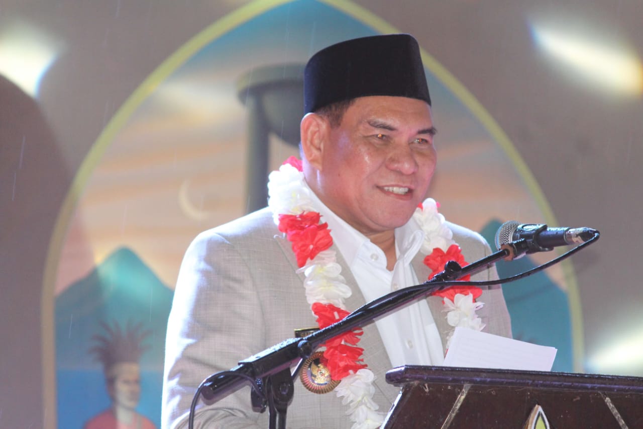 Bupati Fakfak Samaun Dahlan saat memberikan sambutan pada saat pembukaan MTQ XI di Kampung Kota, Distrik Fakfak Timur Tengah, Rabu (1/10/2025). (FOTO//ARA)