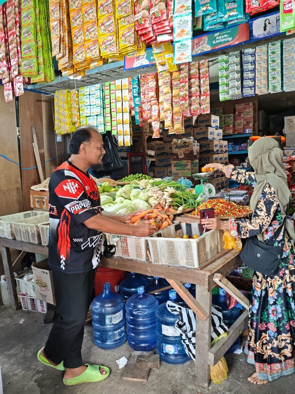 Susu Kental Manis 1kg Rp. 16.000 (stabil).Tahu Putih 1kg Rp. 15.000 (stabil). Pisang Lokal 1kg Rp. 6.000 (stabil).Kentang Sedang 1kg Rp. 23.000 (stabil).Sawi Hijau /ikat Rp. 10.000.Kangkung /ikat Rp. 10.000 Ketimun Sedang /bungkus Rp. 5.000 (stabil).Kacang Panjang /ikat Rp. 10.000 (stabil).Daging Ayam Kampung 1kg Rp. 175.000 (stabil). Telur Ayam Kampung 1 rak Rp. 75.000 (stabil).